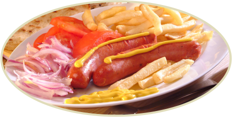2 Λουκάνικα με πατάτες τηγανιτές ή με ρύζι